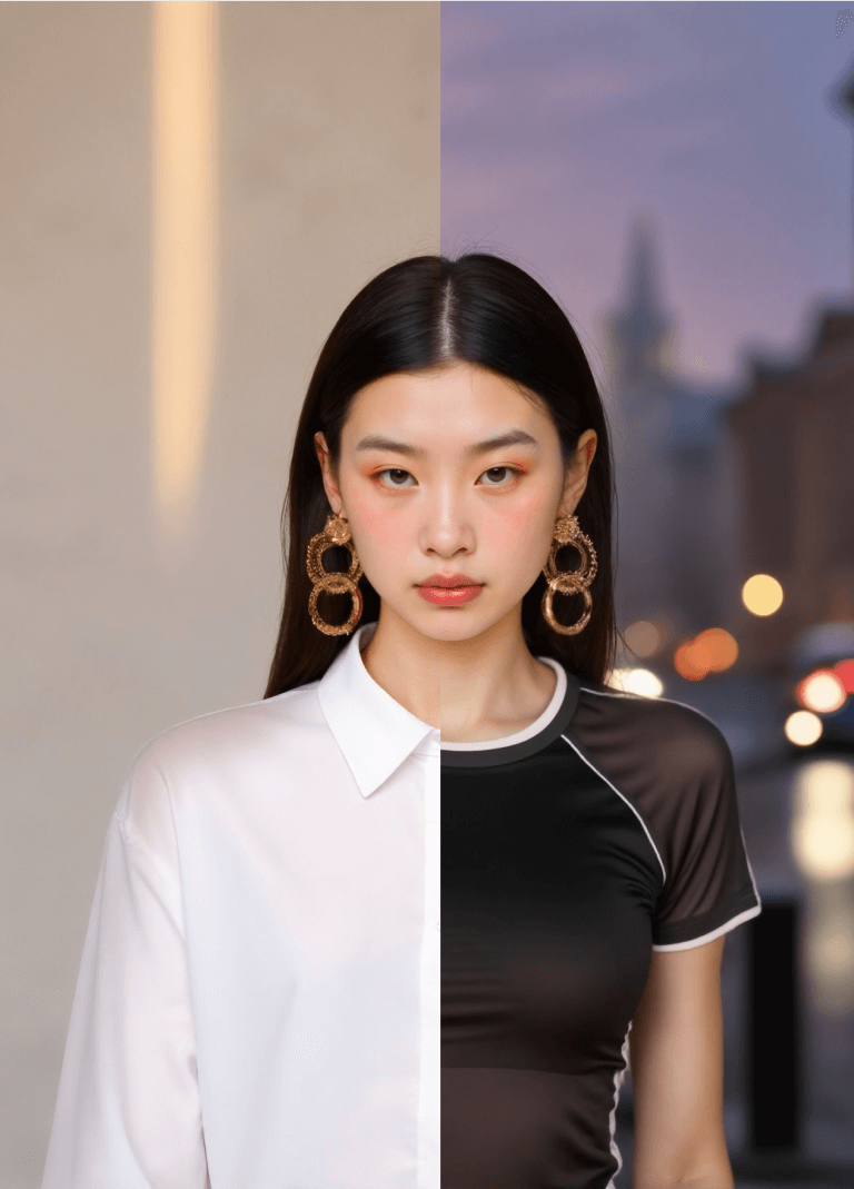 Enables the creation of virtual photoshoots with digital items, models, and adjustable studio environments — 10 times more cost-effective than traditional shooting.
